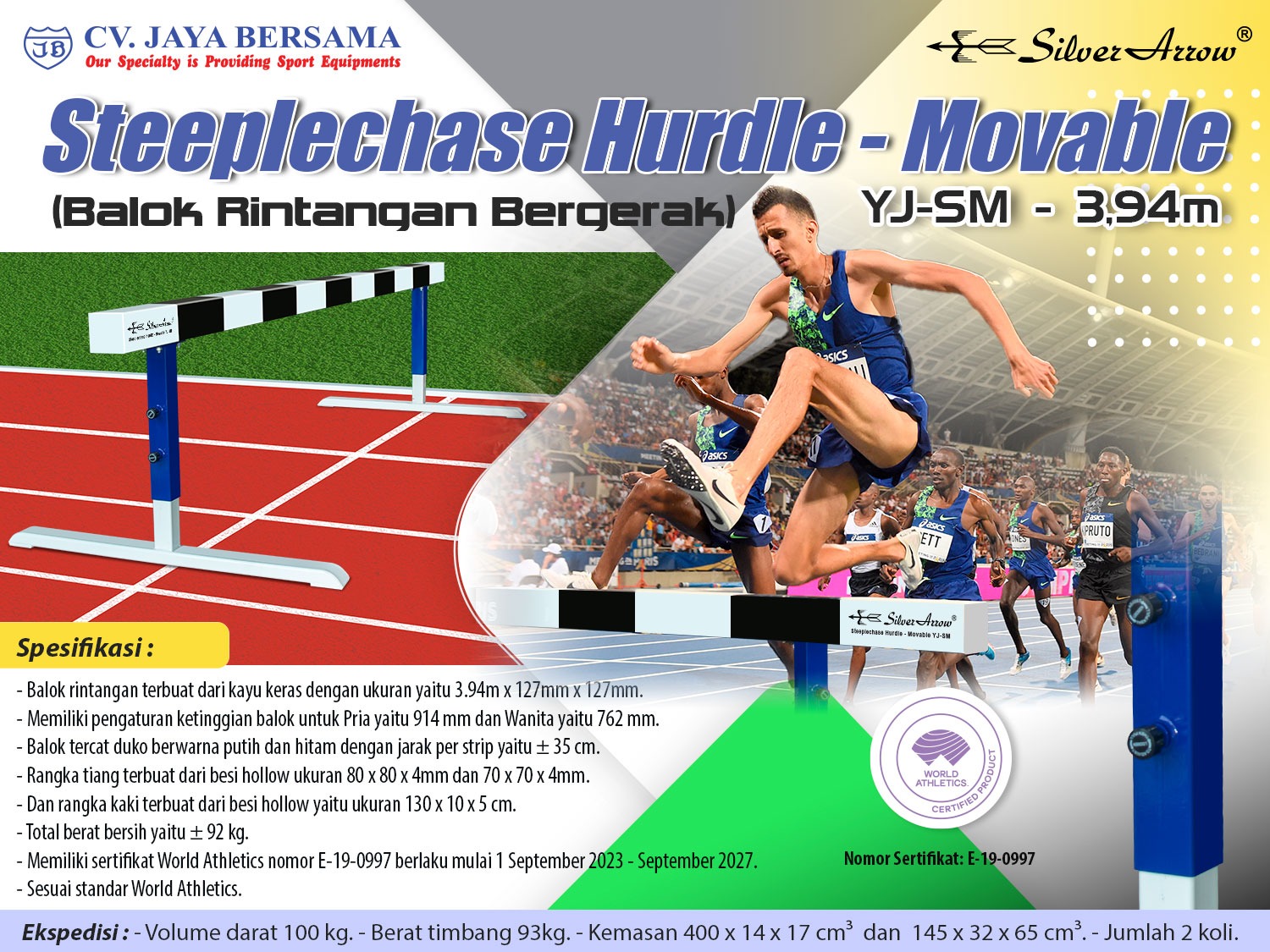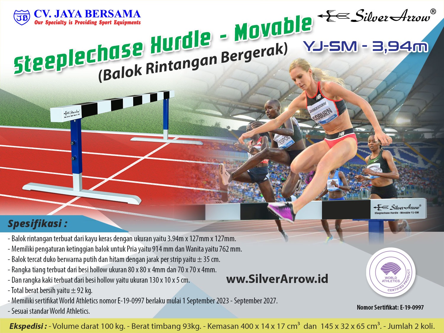 Spesifikasi Steeplechase Hurdle – Movable YJ-SM – 3,94m (Balok Rintangan Bergerak) merek Silver Arrow sebagai berikut :